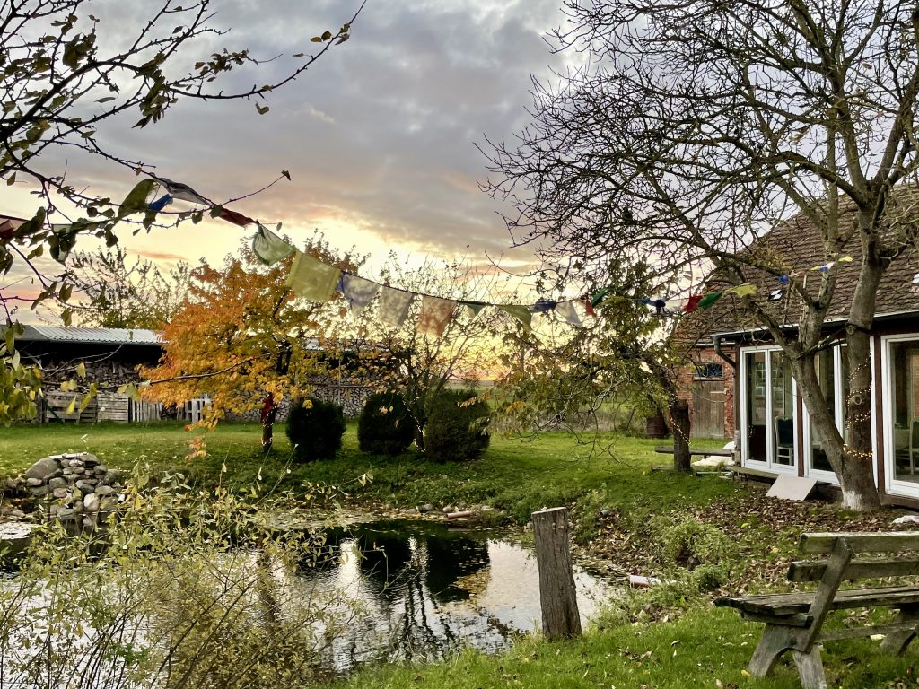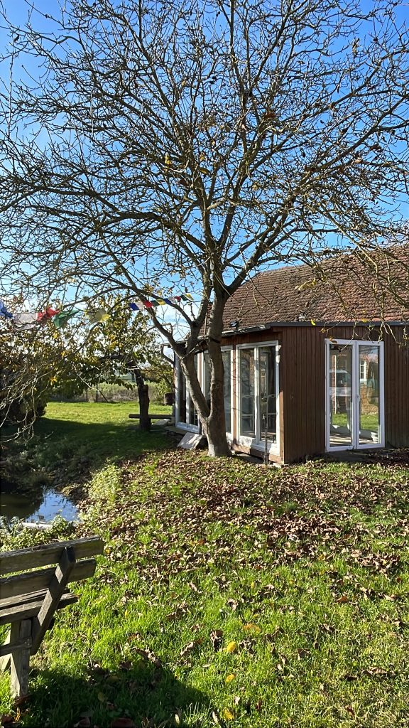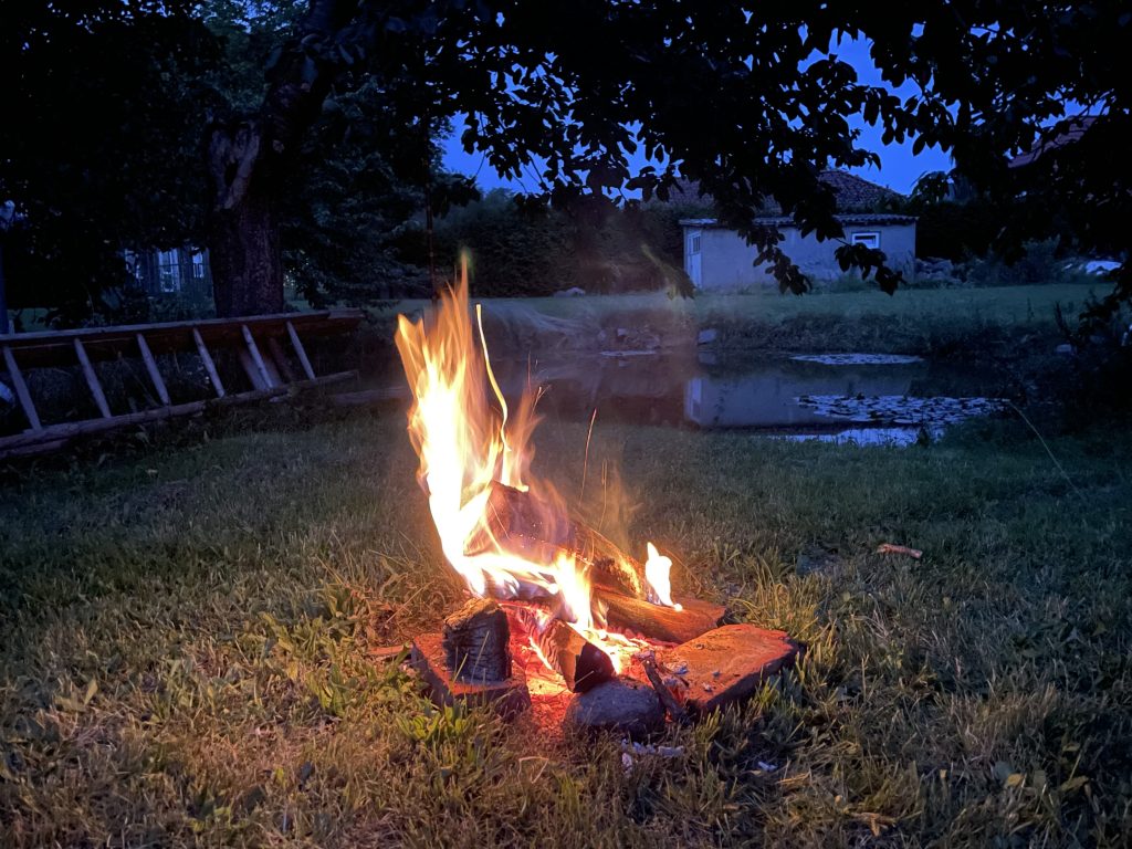 Nachdem ich die Fallen aufgestellt habe, laufe ich – am Weiher vorbei – zurück zum Haus.