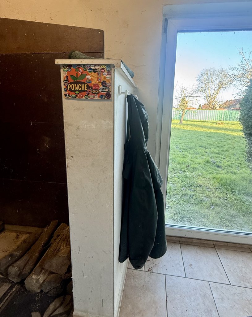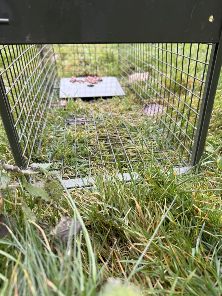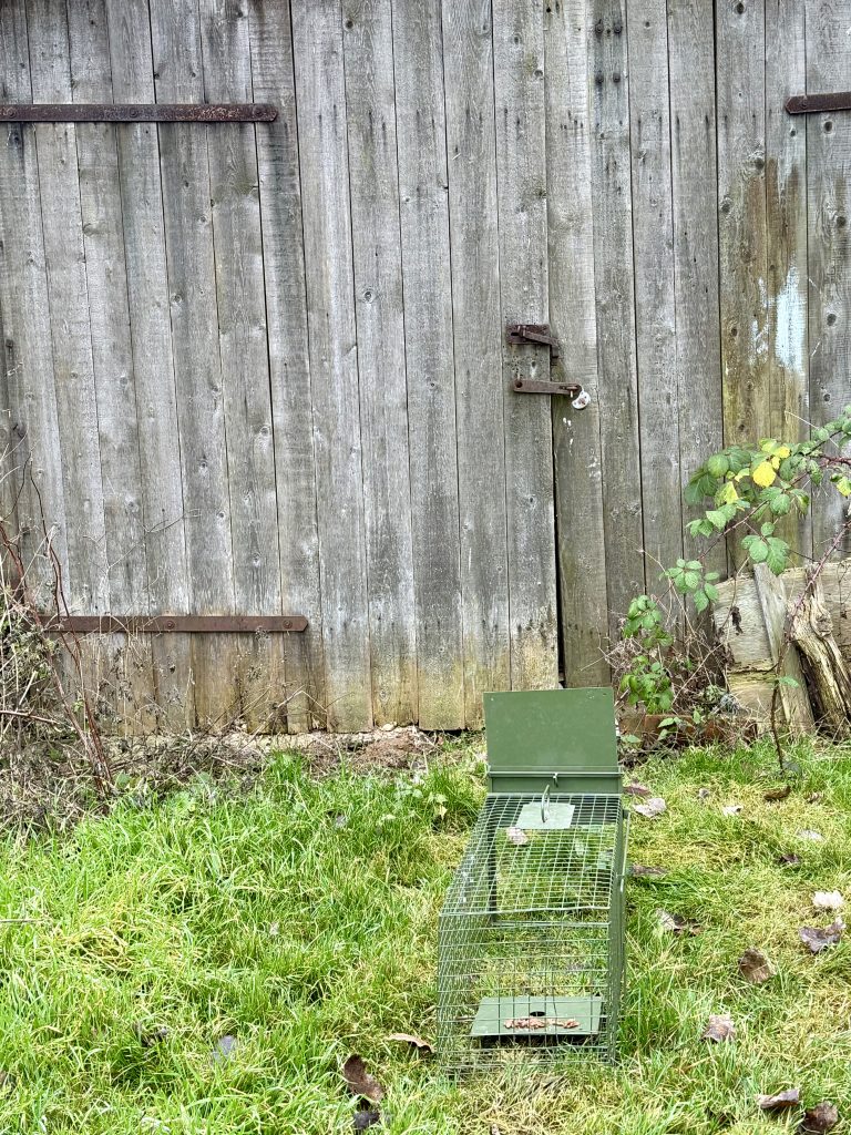 Nach ein bisschen nachdenken entscheide ich mich dafür, die Falle, die das Wochenende über vor dem Holzlager stand, am Kompost hinter der Werkstatt aufzustellen.
