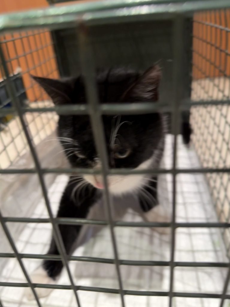 Als die Katze in der Falle saß, habe ich sie das erste Mal aus der Nähe gesehen. Irgendwas war mit dem einen Auge nicht in Ordnung.