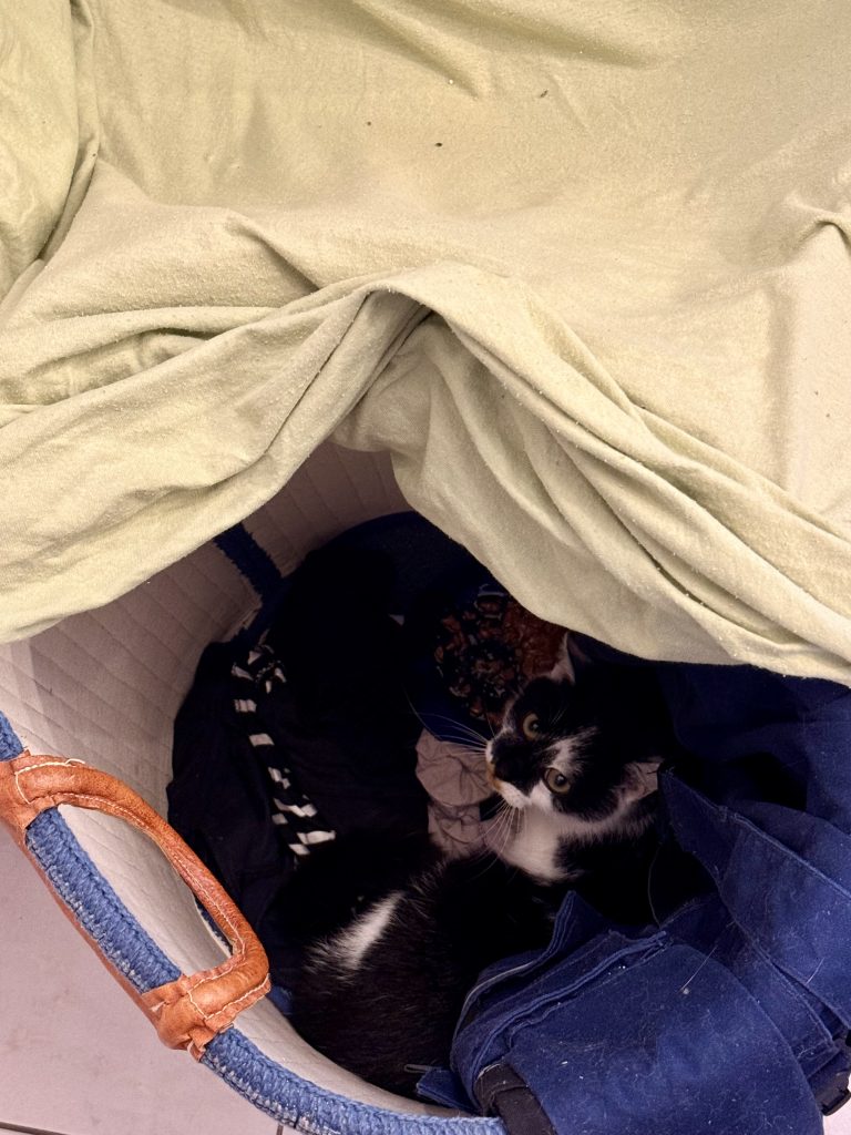 Er ist ein unbedarfter Jungkater. Und frisch kastriert. Erkennbar hat er keine Lust, das warme Badezimmer zu verlassen.