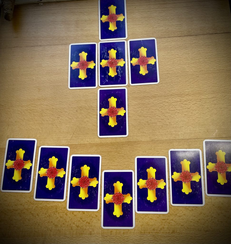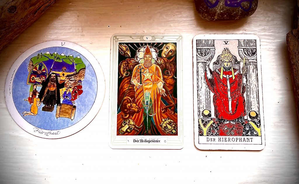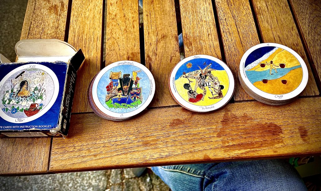 Während ich auf die „Mond“-Karte vor mir auf dem Tisch starre, taucht das Bild der drei im Kreis schwimmenden Tiere in der Badewanne in mir auf. Auf einmal macht es „Klick“ in meinem Kopf: ich habe vom „Rad des Samsara“ geträumt!