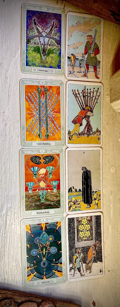 Sowohl im Piraten-Lama-Traum als auch in dem von den Tieren geht es um die Beendigung karmischer Verstrickungen. Das ist eine erfreuliche Nachricht, denn dafür meditiere ich schließlich: Ich möchte das Samsara-Rad der Wiedergeburten hinter mir lassen. Ich nehme die dusteren Träume als Information meines Unbewussten, dass ich zumindest die Chance dazu habe. Nur: wenn der Traum-Vajranatha mit seiner Tarot-Prophezeiung recht hat, werde ich mein großes Lebensziel nicht alleine erreichen. Ich brauche „all of us“ dazu…